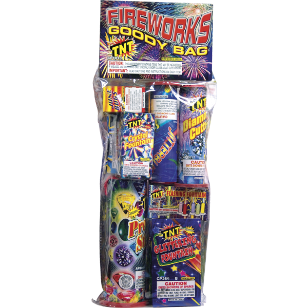 Larger assortment bag with larger cake items and fountains! Great for any show as a starter or full show if your short on time. Variety of effects and colors!