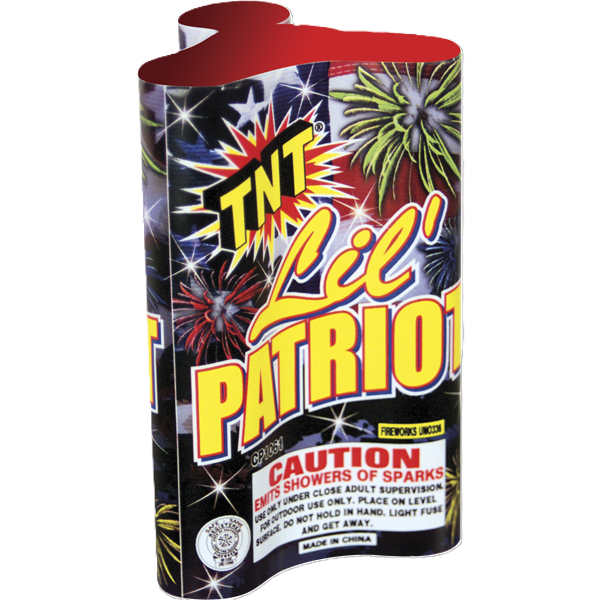 Medium fountain that produces blue, red, and gold stars with a silvery crackle and whistle.
